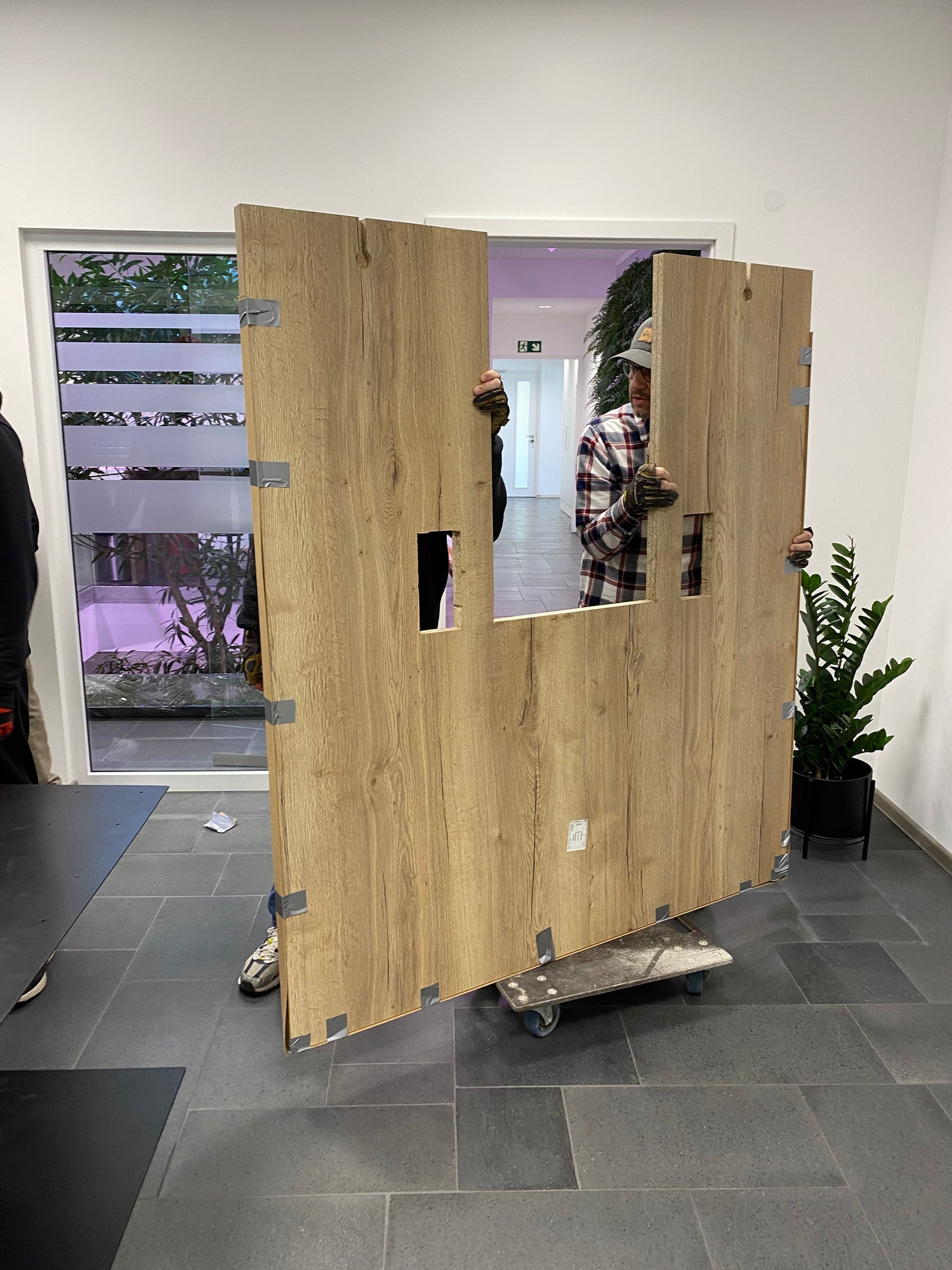 Die Tischplatte wurde in 2 Teilen geliefert und vor Ort zusammengebaut, da es anders nicht durch das verwinkelte Treppenhaus gepasst hätte. Auch das ist ein wichtiger Punkt, den man im Vorfeld prüfen muss.