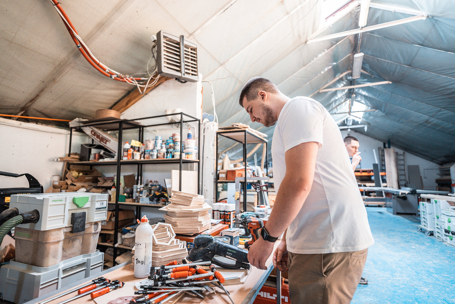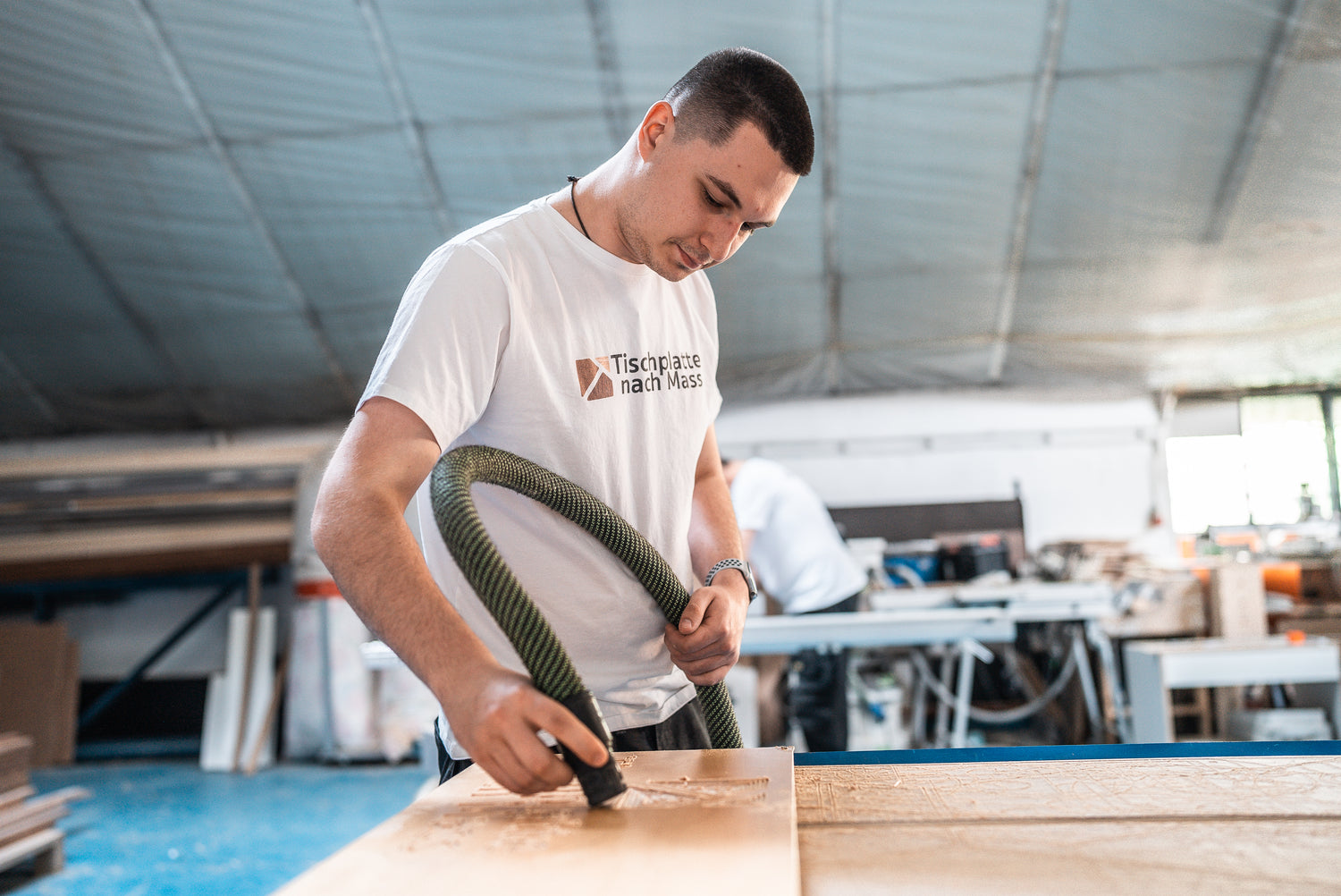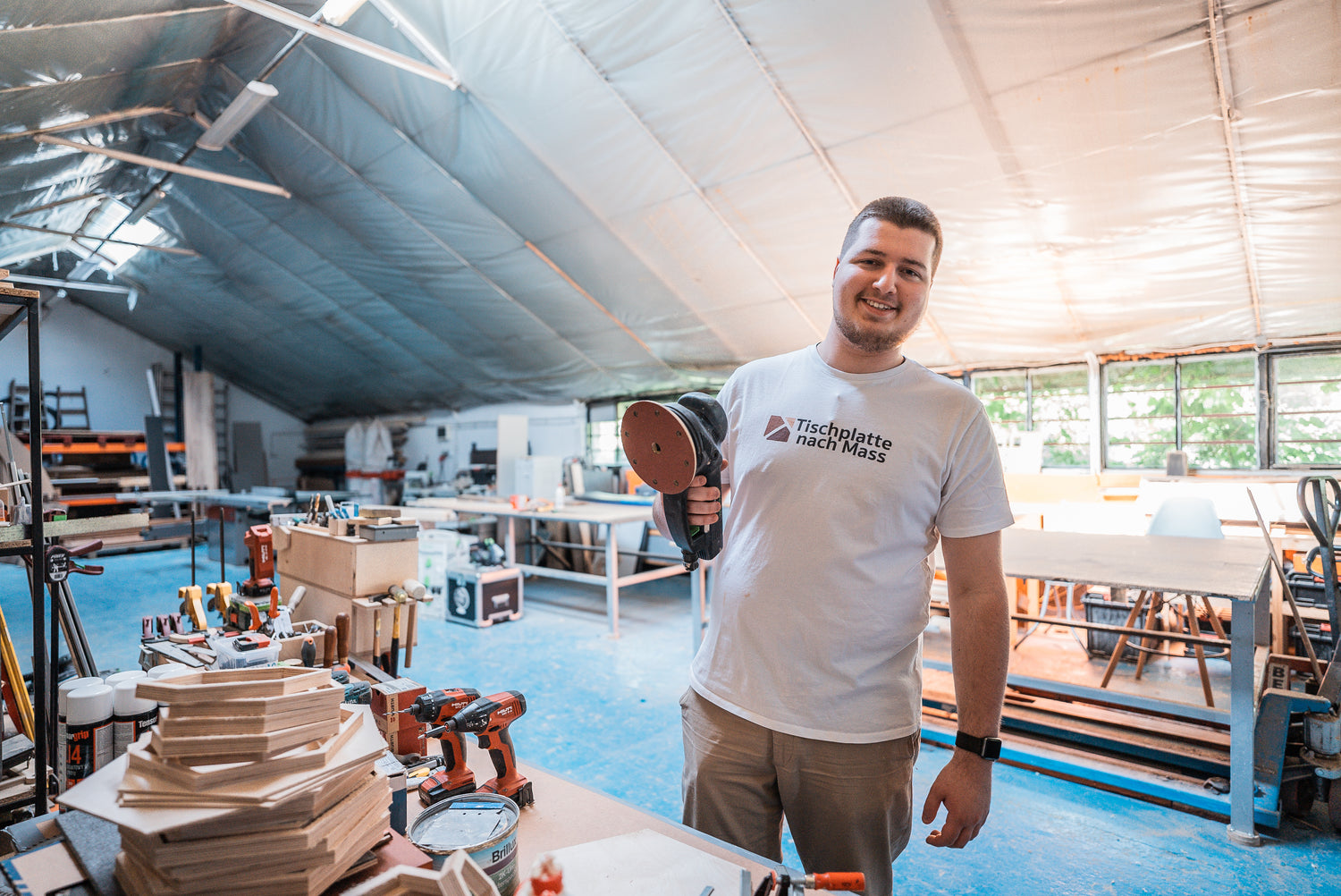 Gemeinsam mit Artur ist er jeden Tag bei der technischen Umsetzung dabei. Er hat ein geschultes Auge und ist eins mit dem Holz.